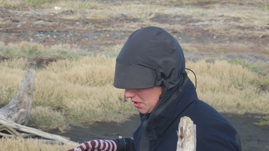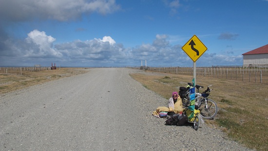 We head west again en route to Porvenir, but the wind is soooooo ferocious that we opted to hitch-hike. Christi bundles herself with the tent fly and wait for a passing vehicle. We are 100 km from Porvenir, which is where we can catch a ferry to Punta Arenas.