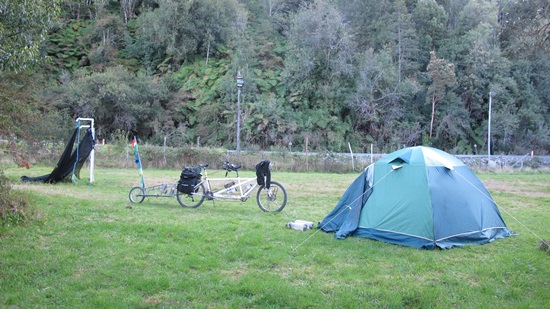 This time, we are camped at a fish cultivation center! Here, they raise baby salmon to repopulate the heavily-fished river near Chaiten.