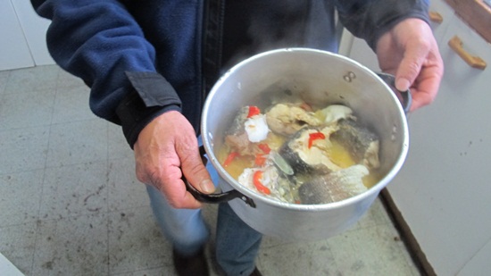 Time to put the fish Into the pot! Eduardo is from Puerto Montt, the city that marks the finish of the Carretera Austral - our goal, for now.